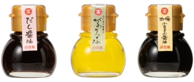 コロンとした瓶に入った特撰こいくち醤油、だし醤油、
